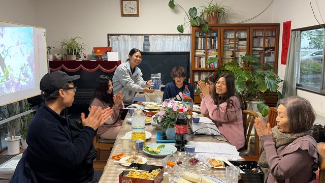 4月から時習学舎に入寮してきた寮生も多いので、それぞれ自己紹介をしてもらいました。きれいに盛り付けられた「ちらし寿司」などを食べながら、寮生のピアノに合わせ、「さくら さくら」を歌いました。その後、俳句を寮生、スタッフがそれぞれ詠みました。日本語学校の学生はまだ日本に来たばかりですが、頑張って指を折り、5、7、5と詠んでいました。その中で1番が選ばれ、プレゼントがありました。