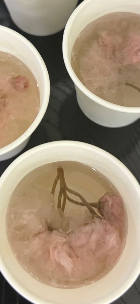 そこで急遽、プロジェクターで桜の花を投影し、「桜茶」を飲みながら「お花見」を楽しみました。